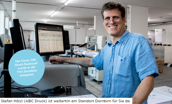 Durch die Integration der Firma ABC-Druck rund um deren ehemaligen Geschäftsführer Stefan Hölzl bauen wir unsere Kompetenz im kleinen Auflagenbereich aus.