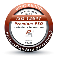 Die VVA hat schon früh auf eine standardisierte Produktion gesetzt und ist nach dem internationalen ProzessStandard Offsetdruck gemäß ISO-Norm 12647-2 zertifiziert ist. Das bedeutet für Sie: Der Druck entspricht exakt den gelieferten Daten – messbar, beweisbar und wiederholbar. Auf 5-, 8- und 10-Farbenmaschinen wird im Dreischichtbetrieb rund um die Uhr Qualität produziert.